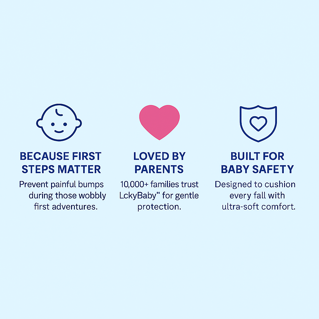 LckyGuard™ is built with ultra-soft padding and adjustable straps to gently protect your baby’s head during their first adventures. Designed for comfort, trusted for safety.